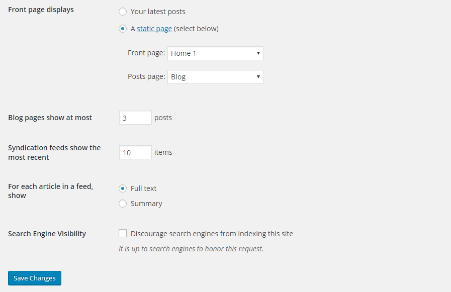 - Go to WordPress Admin > Settings > Reading