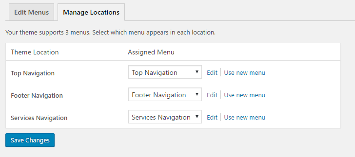 Manage Menus Location