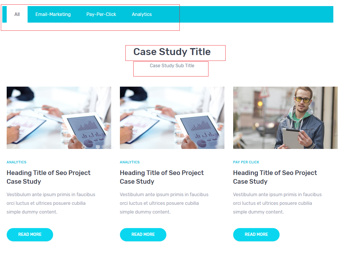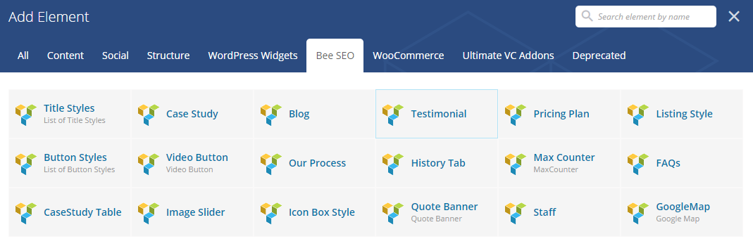 - You can add anything in page using Visual Composer. We have created custom visual component for following.