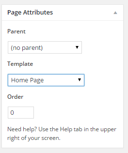 - Select the "Home Page" from template drop down of Page Attribute Section as display screen shot below.