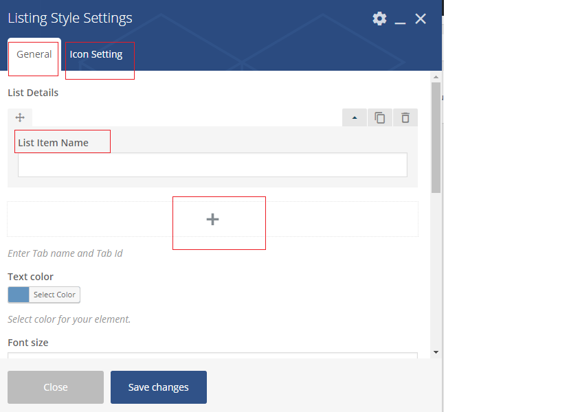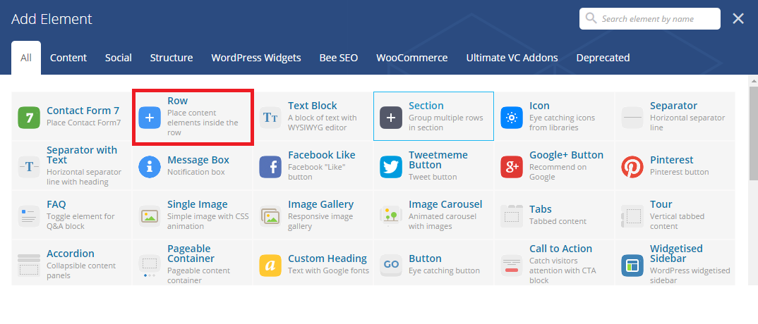 - Click on "+" from row element to open visual component pop-up.