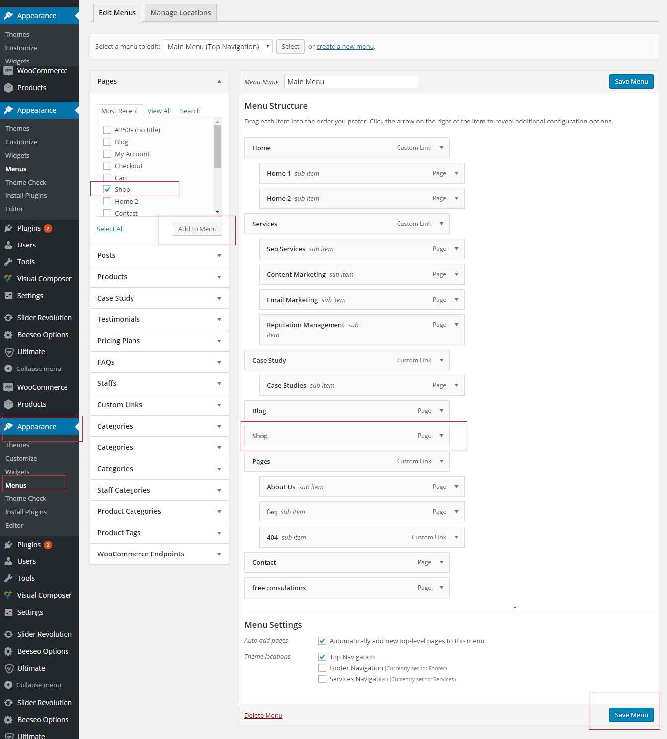 - Go to Appearance > Menus