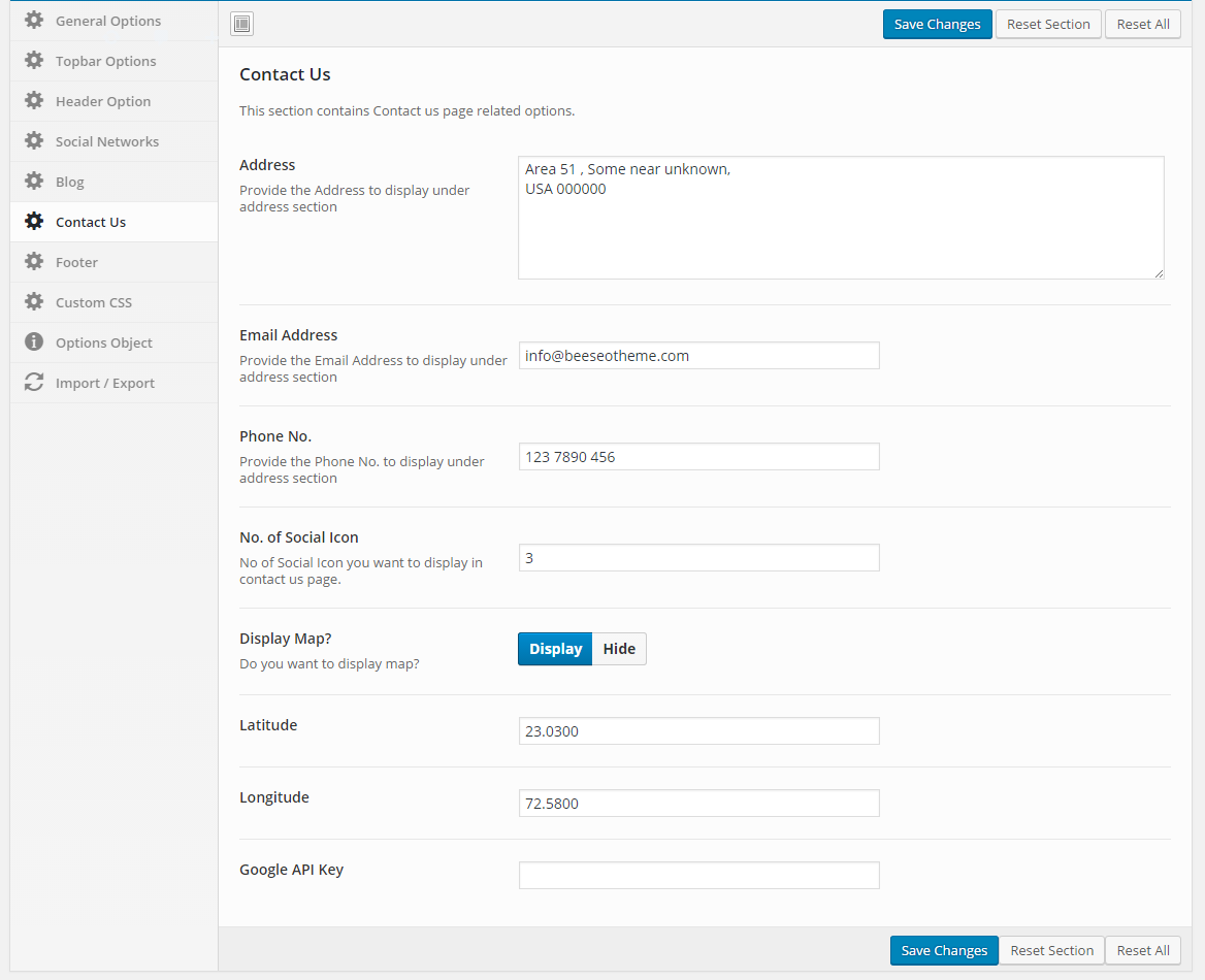 Contact page theme option