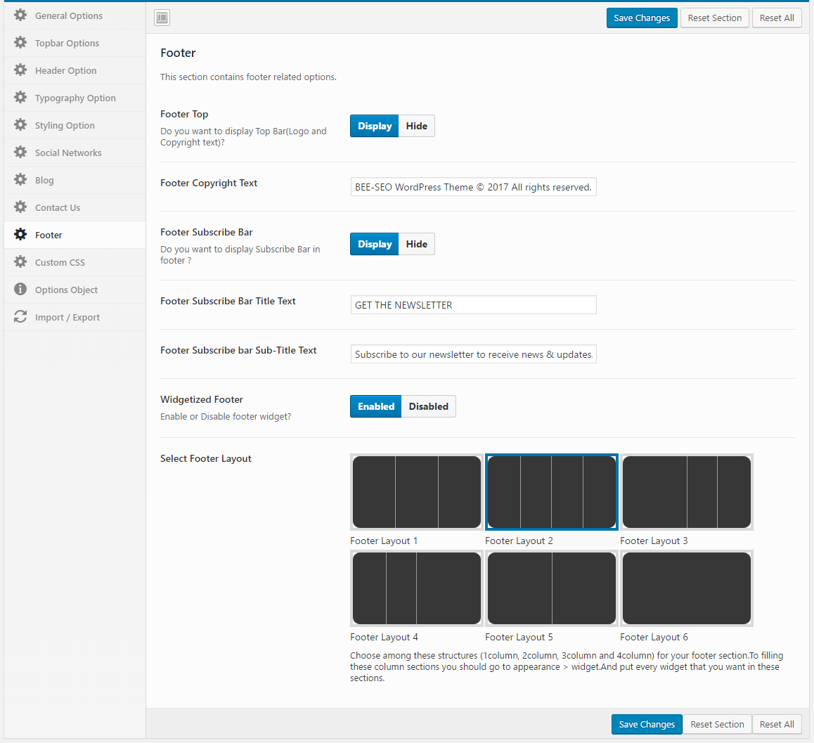 - Go to Beeseo Options > Footer