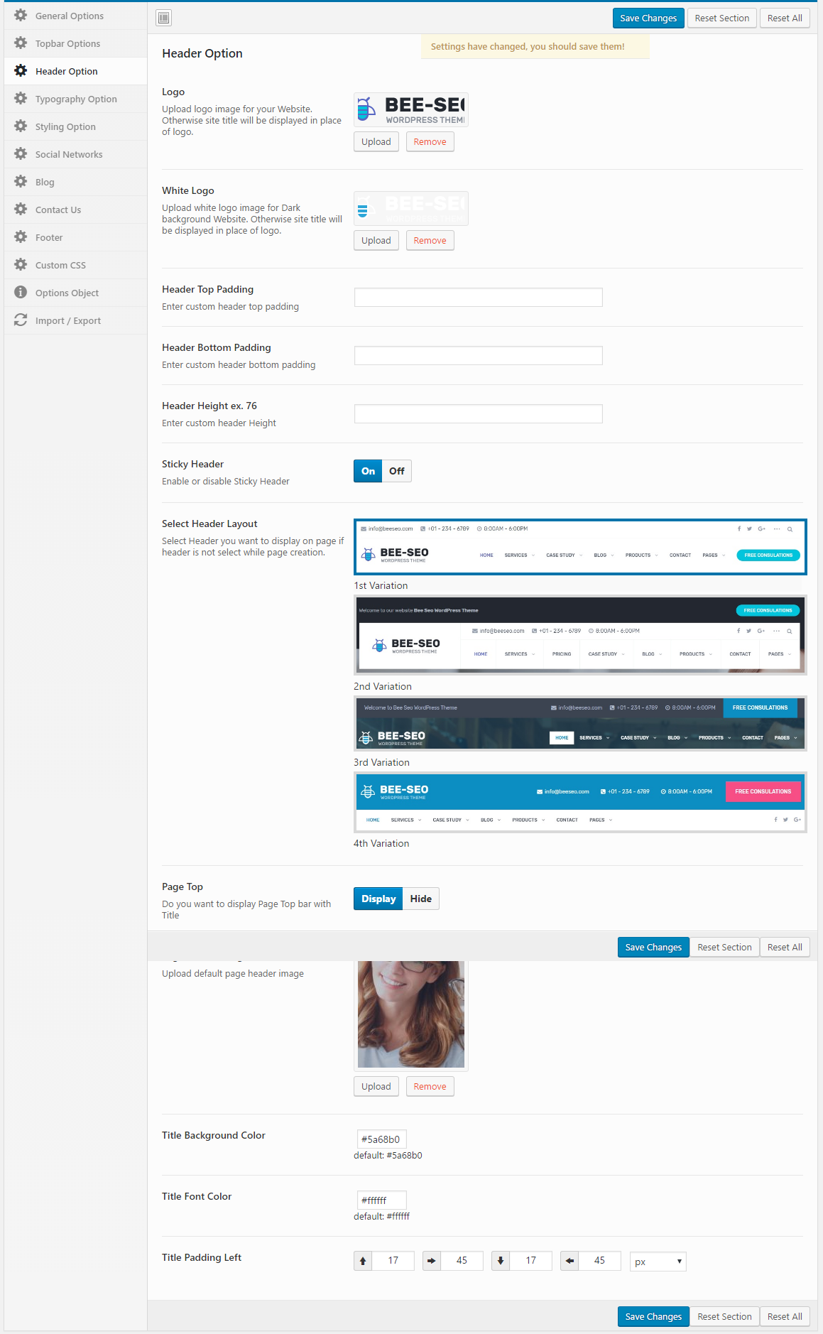 - Go to Beeseo Options -> Header Options
