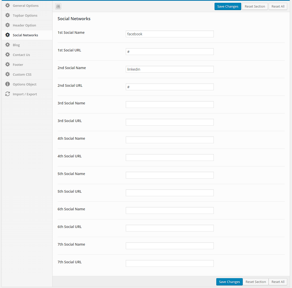 Social Networks theme option