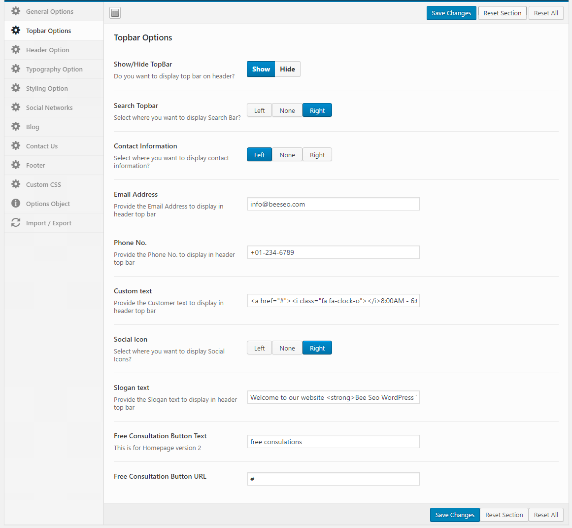 - Go to Beeseo Options -> Topbar Options