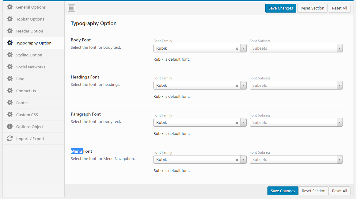 Typography Theme Option
