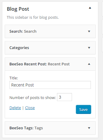 - Go to Appearance > Widgets and look for Bee seo Recent Post widget.